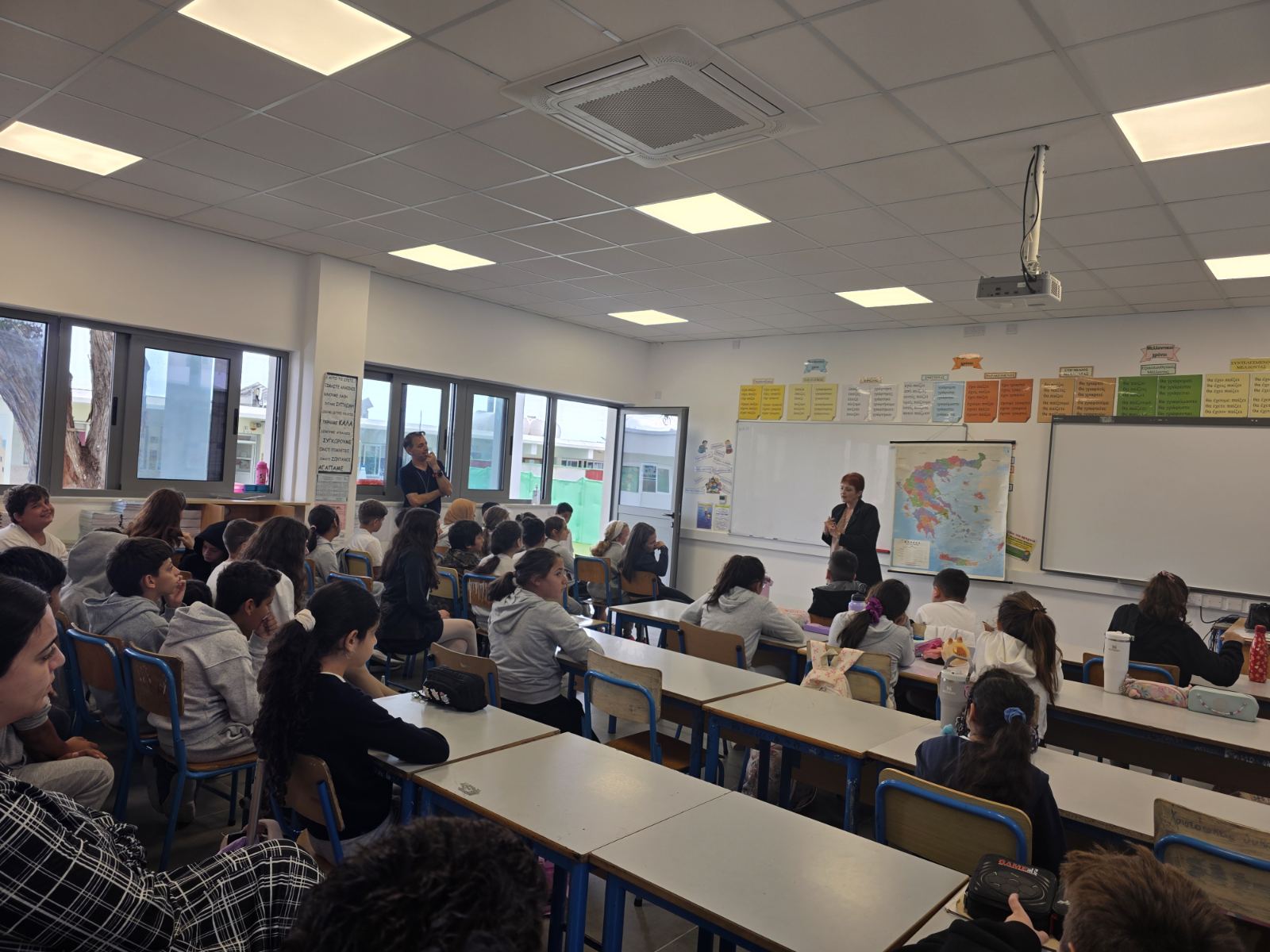 Την Πέμπτη 13/11/ 2025, τα παιδιά των Ε’ και Στ’ τάξεων του σχολείου μας είχαν την ευκαιρία να παρακολουθήσουν μία υπέροχη συγκινητική ομιλία με θέμα τα «Ασυνόδευτα παιδιά στην Ελλάδα 1974». Η καλεσμένη της Επιτροπής Μνήμης Κατεχομένων, η κ. Νιόβη Κερκίδου, αναφέρθηκε σε μερικά σημαντικά γεγονότα και ύστερα μίλησε για τη δική της εμπειρία ως μαθήτρια αυτή την τραγική περίοδο.